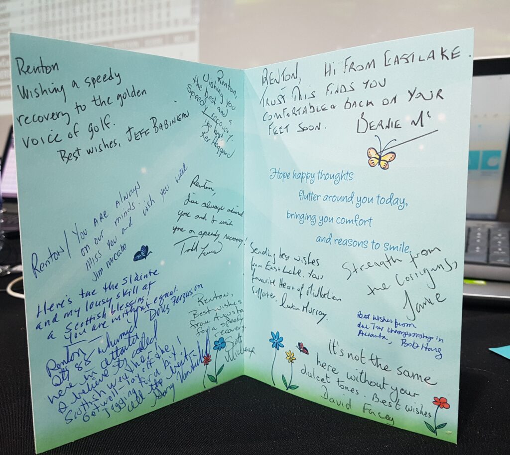 And a personal thank you, Renton, for your pioneering work in covering golf on the radio – no one made the sport sound better.  You are greatly missed.