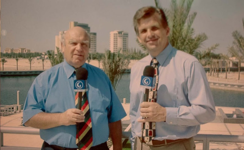 Renton with Warren Humphries in the Middle East.
