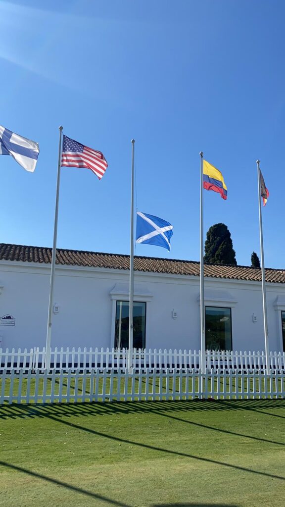 A lovely touch by  @EuropeanTour and organisers of #EDAM2021 with the lowering of the Scottish saltire to half mast at Valderrama in memory of Renton Laidlaw who sadly passed away earlier in the week.